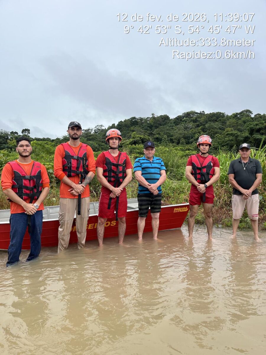 Bombeiros resgatam moradores ilhados após fortes chuvas em Guarantã do Norte 12 de fevereiro de 2026
