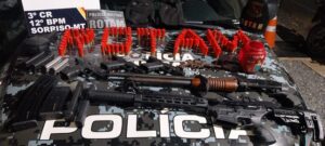 Dois suspeitos, de 22 e 24 anos, foram presos no último domingo, 28 de abril, com sete armas de fogo e 282 munições, além de carregadores e balas clavas em Sorriso.
