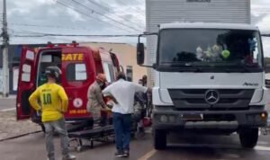 A equipe do 4º Batalhão de Bombeiros Militar (4º BBM) foi acionada por volta das 9h15 para atender uma ocorrência de atropelamento. No local, os bombeiros localizaram a ciclista sob o caminhão. A vítima estava consciente e orientada, apresentando um ferimento na perna e escoriações pelo corpo.
