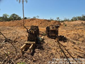 Equipes do Batalhão de Polícia Militar de Proteção Ambiental (BPMPA), com apoio da Rotam, apreenderam na última sexta-feira, 25 de julho, duas escavadeiras e duas motobombas utilizadas em um garimpo ilegal na zona rural de Matupá-MT.