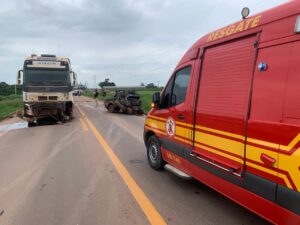 Homem morre após colisão entre carro e carreta na BR-163, entre Guarantã do Norte e Matupá