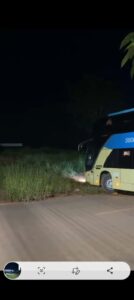 Ônibus desgovernado atravessa a BR-163 e atinge residência em Nova Santa Helena