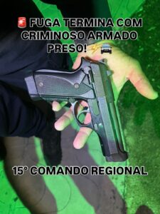 Durante a abordagem, os policiais encontraram na cintura do suspeito uma pistola Taurus calibre .380 carregada, além de cinco munições intactas. O homem, que já possui passagens por tráfico de drogas, afirmou que portava a arma devido a conflitos entre facções criminosas.