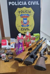 Em Brasnorte, um homem de 36 anos foi preso por posse irregular de arma de fogo após os policiais encontrarem em sua residência uma espingarda calibre 32, duas armas de pressão adaptadas para calibre 22, munições e uma porção de maconha.