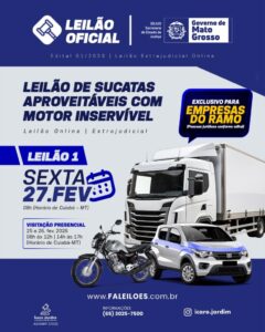 “Nosso objetivo é promover destinação adequada aos bens apreendidos e, ao mesmo tempo, gerar retorno concreto para o fortalecimento da segurança pública em Mato Grosso”, destacou.